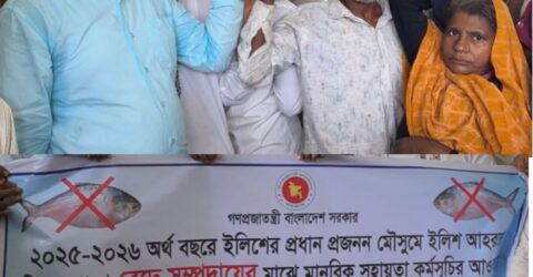 মা ইলিশ রক্ষায় বাউফলে জেলেদের মধ্যে বিশেষ চাল বিতরণ
