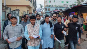 বরিশাল নগরীর ০৭ নং ওয়ার্ডে বরিশাল-৫ আসনের বিএনপি মনোনীত প্রার্থী মজিবর রহমান সরোয়ার পক্ষে প্রচার-প্রচারণা News News Desk প্রকাশিত: ৬:৫১ অপরাহ্ণ, জানুয়ারি ৩০, ২০২৬ বরিশাল : আসন্ন জাতীয় সংসদ নির্বাচনকে কেন্দ্র করে জমে উঠেছে বরিশালে প্রচার প্রচারণা। বিভিন্ন প্রতিশ্রুতি দিয়ে সম্ভাব্য জনপ্রতিনিধিরা ভোট বাগাতে ভোটারদের দ্বারে দ্বারে ছুটে বেড়াচ্ছেন। শুক্রবার(৩০ জানুয়ারী) বিকালে নগরীর ভাটিখানা এলাকায় বিএনপি চেয়ারপারসনের উপদেষ্টা ও বরিশাল-৫ আসনের বিএনপি মনোনীত প্রার্থী মজিবর রহমান সরোয়ার এর পক্ষে ০৭ নং ওয়ার্ড এর নেতৃবৃন্দরা লিপলেট বিতারন ও প্রচার প্রচারোনা করেন। এ সময় উপস্থিত ছিলেন সৈয়দ আকবর,সাবেক যুগ্ম সম্পাদক বরিশাল মহানগর বিএনপি এবং এ্যাড হাফিজ আহমেদ বাবলু, সহকারী পাবলিক প্রসিকিউটর এবং সাংগঠনিক সম্পাদক যুবদল বরিশাল জেলা দঃ, একে এম জগলুল ফারুক, সভাপতি, কাউনিয়া ব্রাঞ্চ রোড জামে মসজিদ আরো উপস্থিত ছিলেন আরিফুর রহমান মুন্না, মহানগর যুবদল,মেহেদি হাসান, বন ও পরিবেশ সম্পাদক যুবদল বরিশাল জেলা,তরিকুল ইসলাম তারেক, সাংগঠনিক সম্পাদক জেলা শ্রমিক দল এছাড়া আরো উপস্থিত ছিলেন অন্যান্য নেতৃবৃন্দ। SHARES প্রচ্ছদ বিষয়: প্রকাশক : শারমিন সুলতানা সম্পাদক : মো:সাজ্জাদ হোসেন হৃদয় সহ সম্পাদক : মো:শুভ হাওলাদার। প্রধান উপদেষ্টা : মো: মকবুল হোসেন যুগ্ন উপদেষ্টা : ডা. রিয়াদুল ইসলাম খান বরিশাল ঠিকানা:: বিবির পুকুর পাড় হাবিব ভবন, ৫ম তলা ঢাকা ঠিকানা:: উওরা ১২ নং সেক্টর ৩ নং রোড